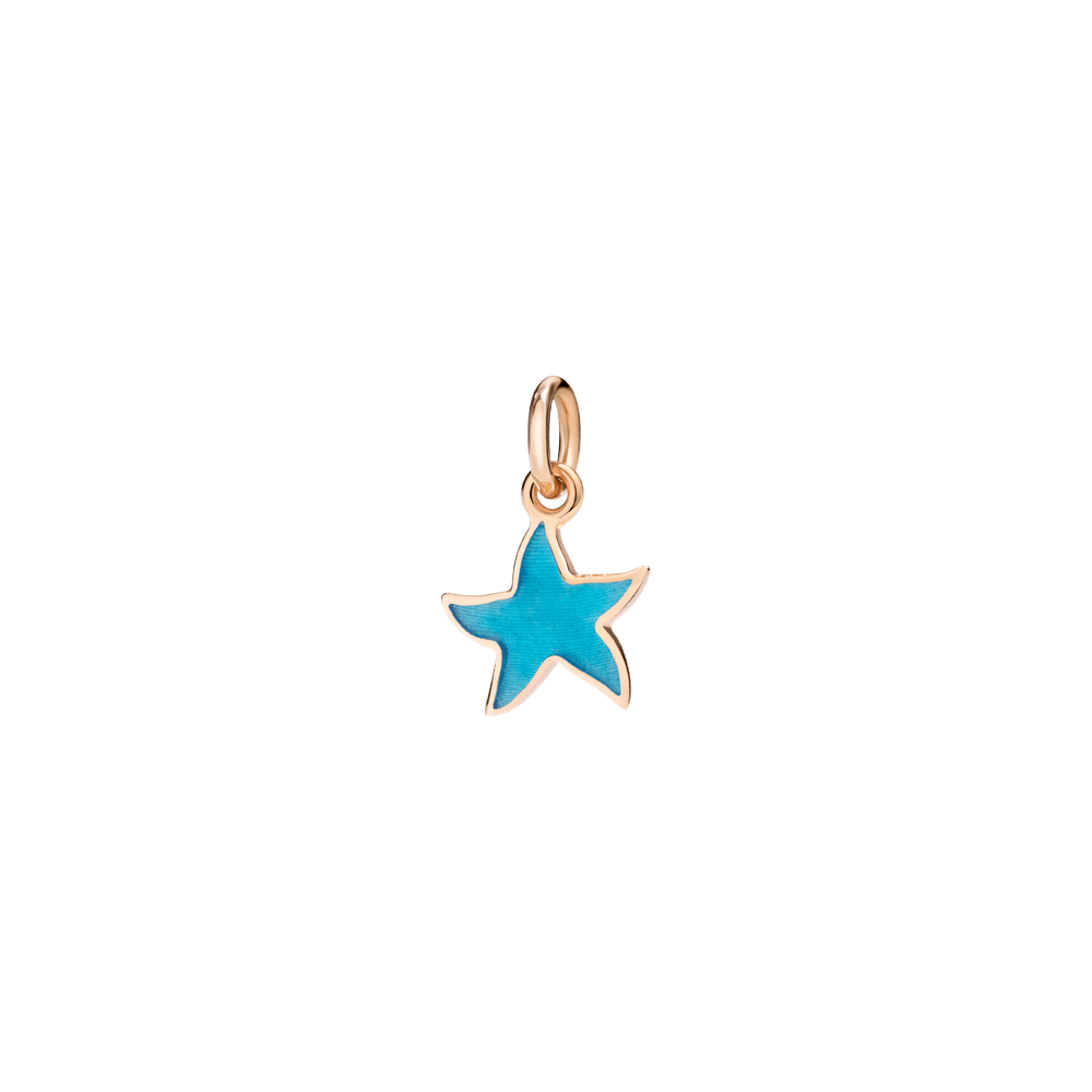 Anhänger Stellina aus 9-karätigem Roségold und türkisfarbener Emaille – kleines Modell. Mit schwarzer Kordel.