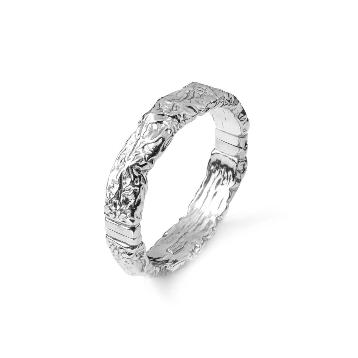 Bracelet en argent sterling Collection Petra - Le jeu des anneaux en argent moulé sous pression qui se chassent les uns les autres. Les différentes formes et tailles des maillons donnent à la pièce une légèreté et un volume presque éthérés. Une beauté fraîche et légère.