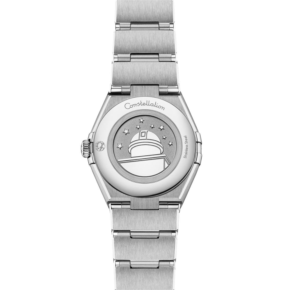 The dramatic and enduring design of the OMEGA Constellation is characterised by its famous half-moons, “claws” on the case and mono-rang bracelet.This 28 mm stainless steel model features a bezel engraved with Roman numerals, crystal white silvery dial and scratch-resistant saphire crystal. The blackened hands, OMEGA logo, Constellation star and indexes contrast beautifully with the white dial.At the heart of this timepiece is the OMEGA Calibre 4061, while the caseback is stamped with the Constellation Observatory medallion.