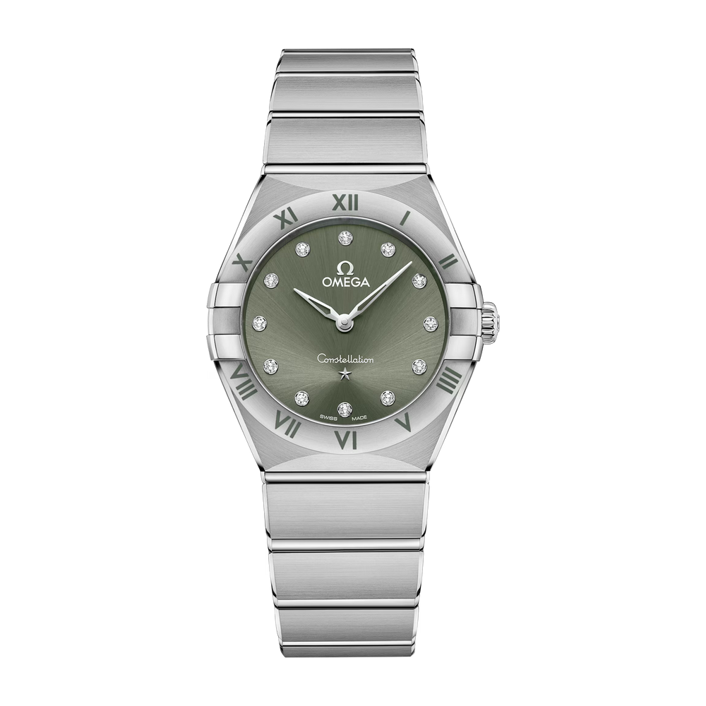 This 28 mm model, with case and bracelet in stainless steel, features indexes and applied elements in 18K white gold, set against a striking green matcha dial.