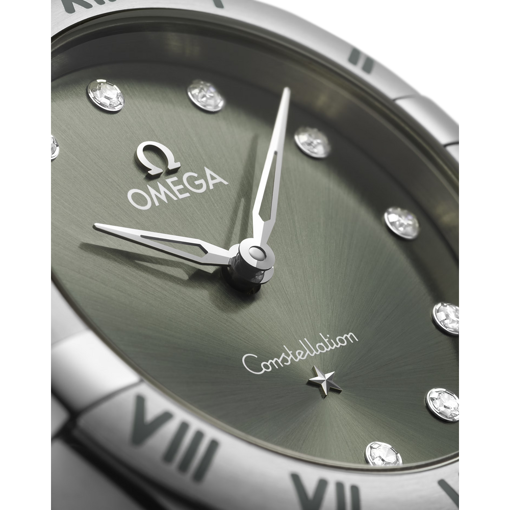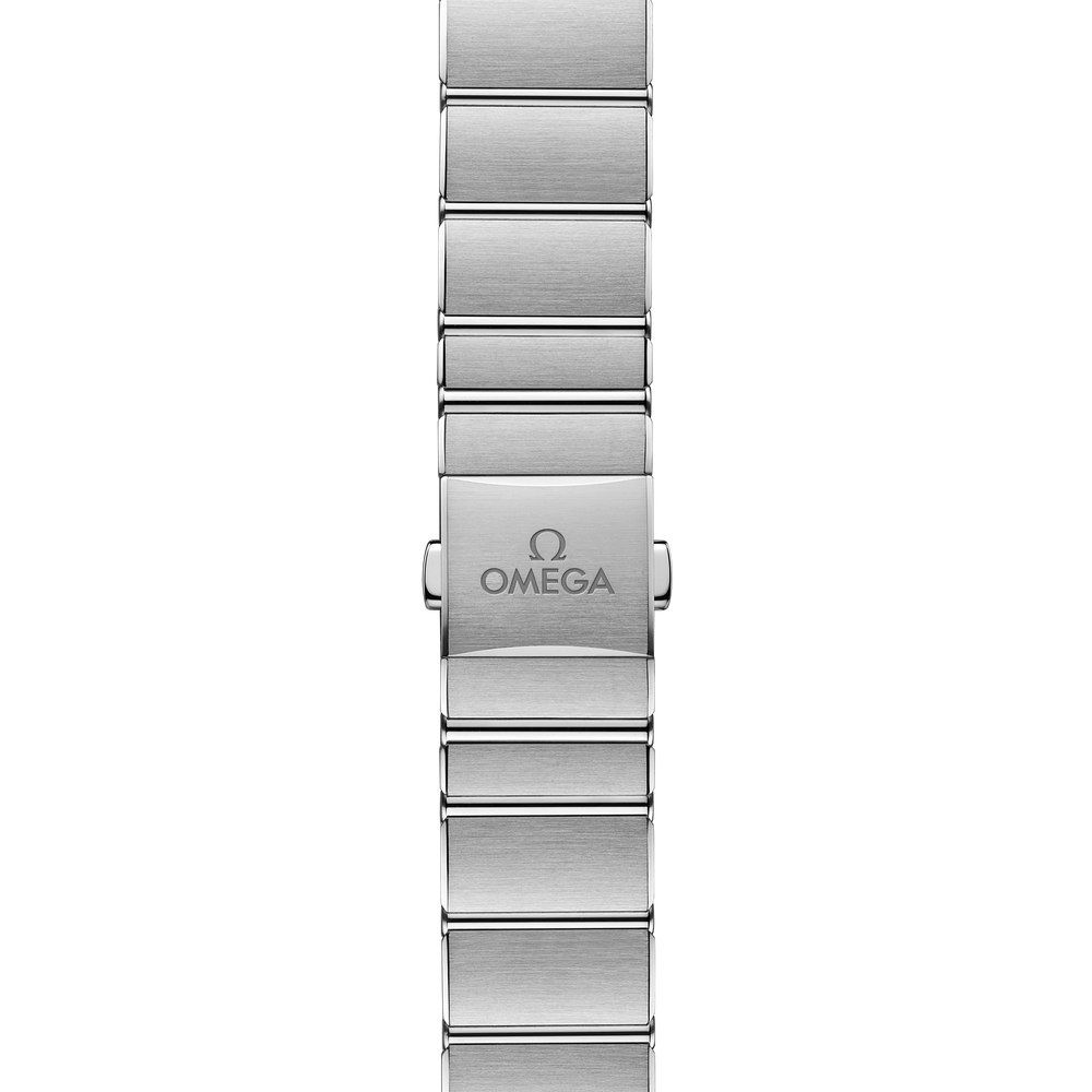 Calibre OMEGA 4061: Quartz movement with "Long Life" feature to maximize the autonomy of the battery. Exclusive red OMEGA logo with rhodium plated parts and circular graining.