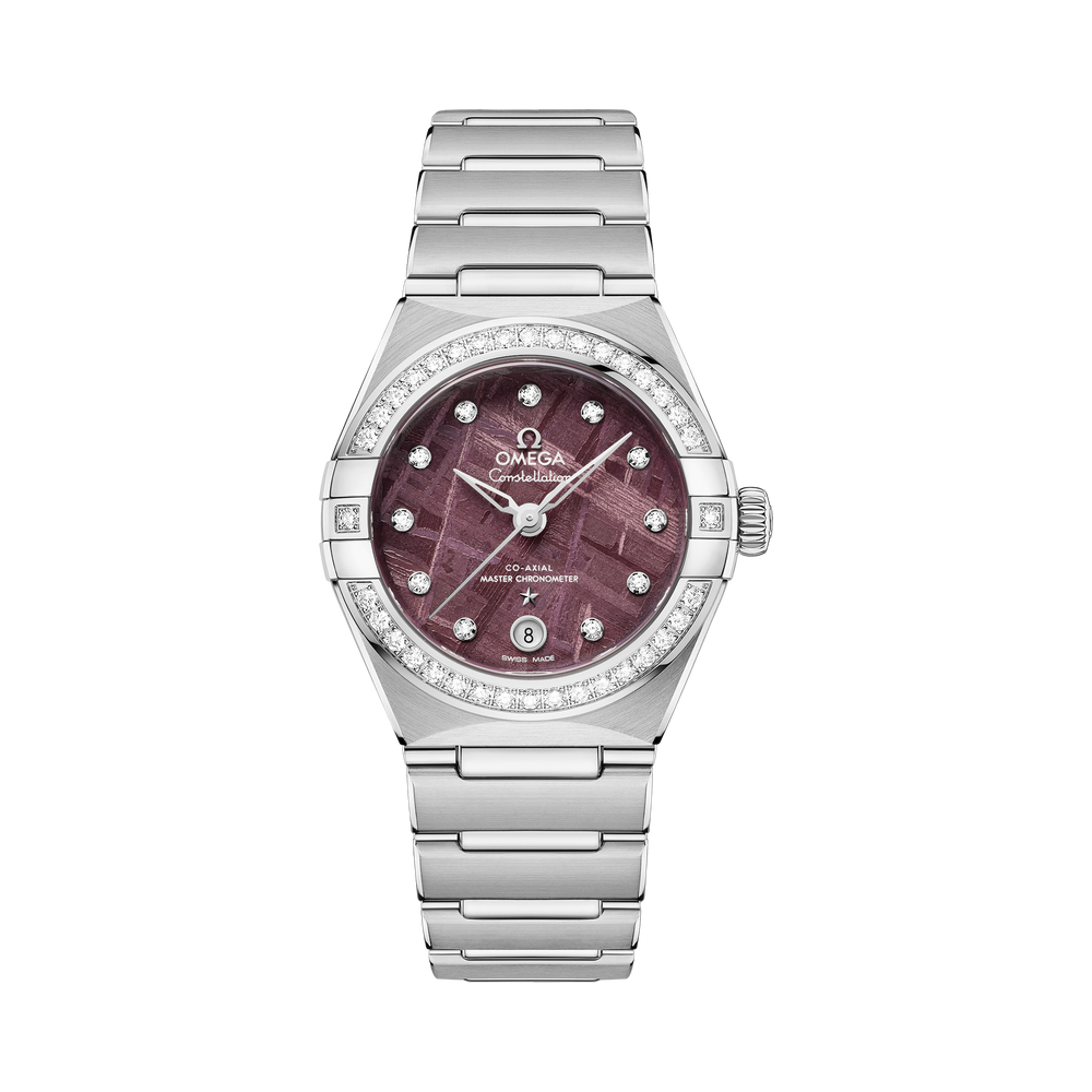 The 29 mm watch is presented with a case and mono-rang bracelet created from stainless steel, with signature Constellation features including the polished claws, half-moon facets, and a diamond-paved bezel.
