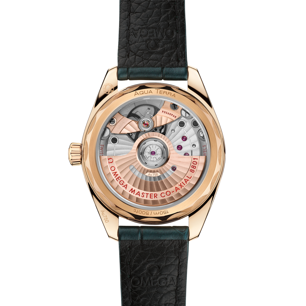 Set on a shimmering leather strap in pine green, this watch is powered by OMEGA’s Co-Axial Master Chronometer calibre 8801, certified at the industry’s highest standard by the Swiss Federal Institute of Metrology (METAS).