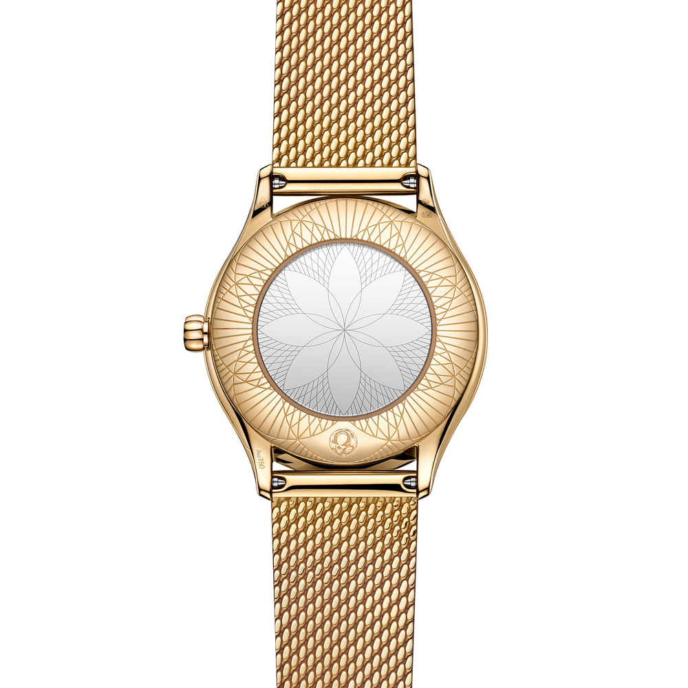 This watch is set on an 18K Moonshine™ Gold mesh bracelet embossed with a silk-like pattern and special foldover clasp. Inside, it is driven by the OMEGA Calibre 4061, which sits behind a metallised sapphire crystal caseback with a mirror effect and “Her Time” pattern.