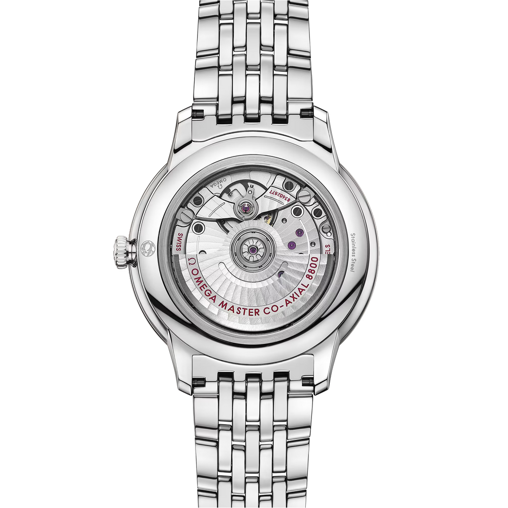 This Master Chronometer certified watch is presented on a stainless steel bracelet and is driven by the OMEGA Master Co-Axial Calibre 8800, which can be admired through the scratch-resistant sapphire crystal caseback.