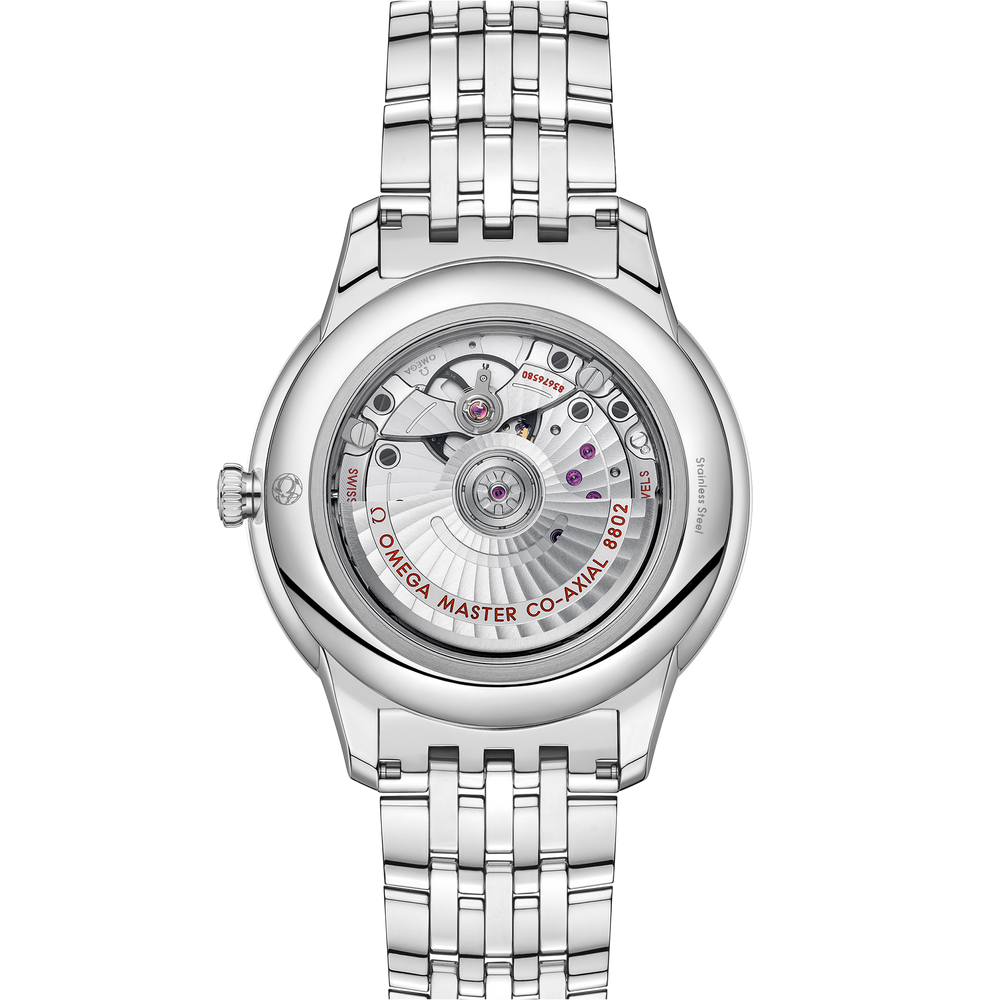 This Master Chronometer certified watch is presented on a stainless steel bracelet and is driven by the OMEGA Master Co-Axial Calibre 8802, which can be admired through the scratch-resistant sapphire crystal caseback.