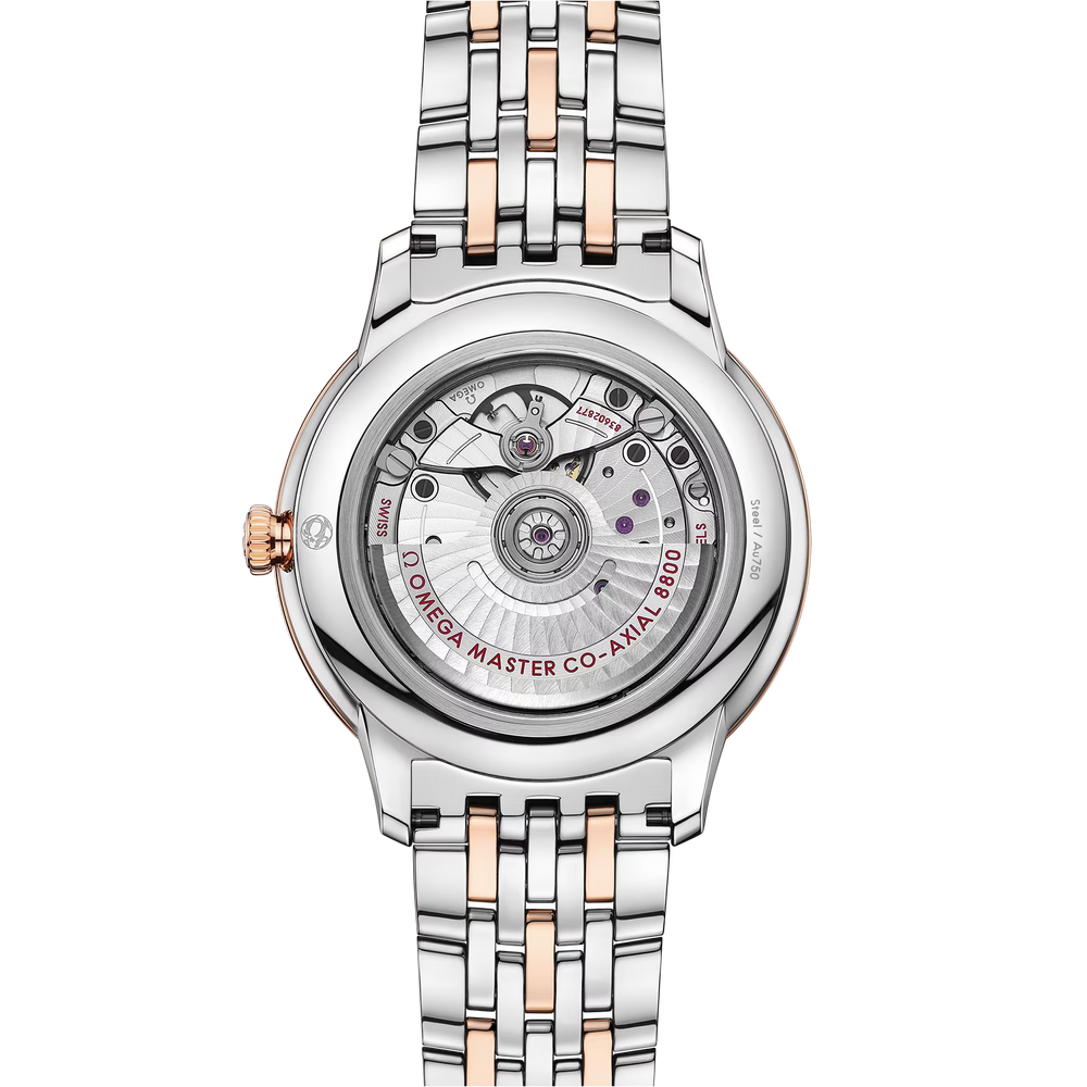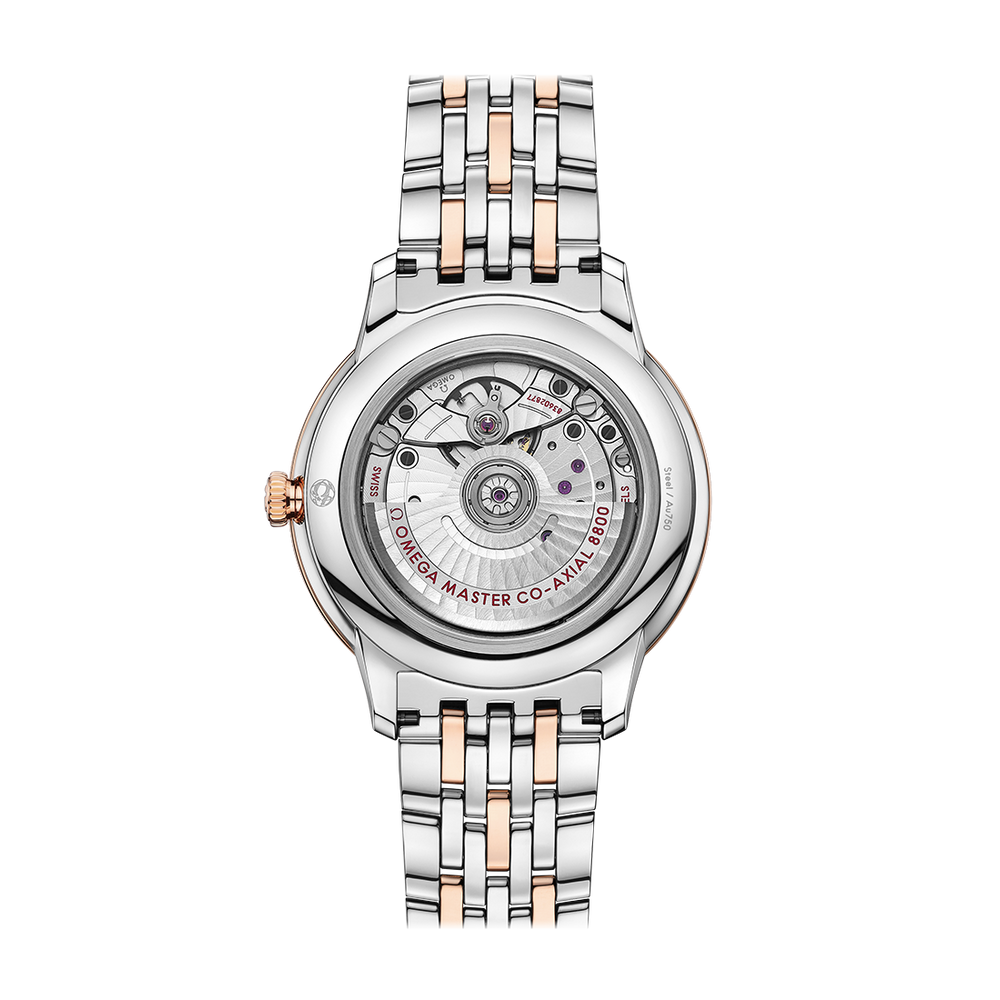 This Master Chronometer certified watch is presented on a stainless steel - Sedna™ Gold bracelet and is driven by the OMEGA Master Co-Axial Calibre 8800, which can be admired through the scratch-resistant sapphire crystal caseback.