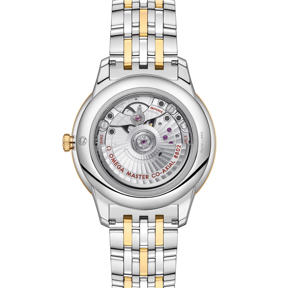 This Master Chronometer certified watch is presented on a stainless steel - yellow gold bracelet and is driven by the OMEGA Master Co-Axial Calibre 8802, which can be admired through the scratch-resistant sapphire crystal caseback.