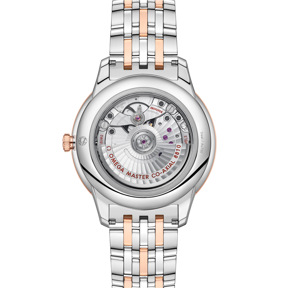 This Master Chronometer certified watch is presented on a stainless steel - Sedna™ Gold bracelet and is driven by the OMEGA Master Co-Axial Calibre 8810, which can be admired through the scratch-resistant sapphire crystal caseback.