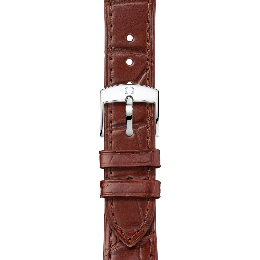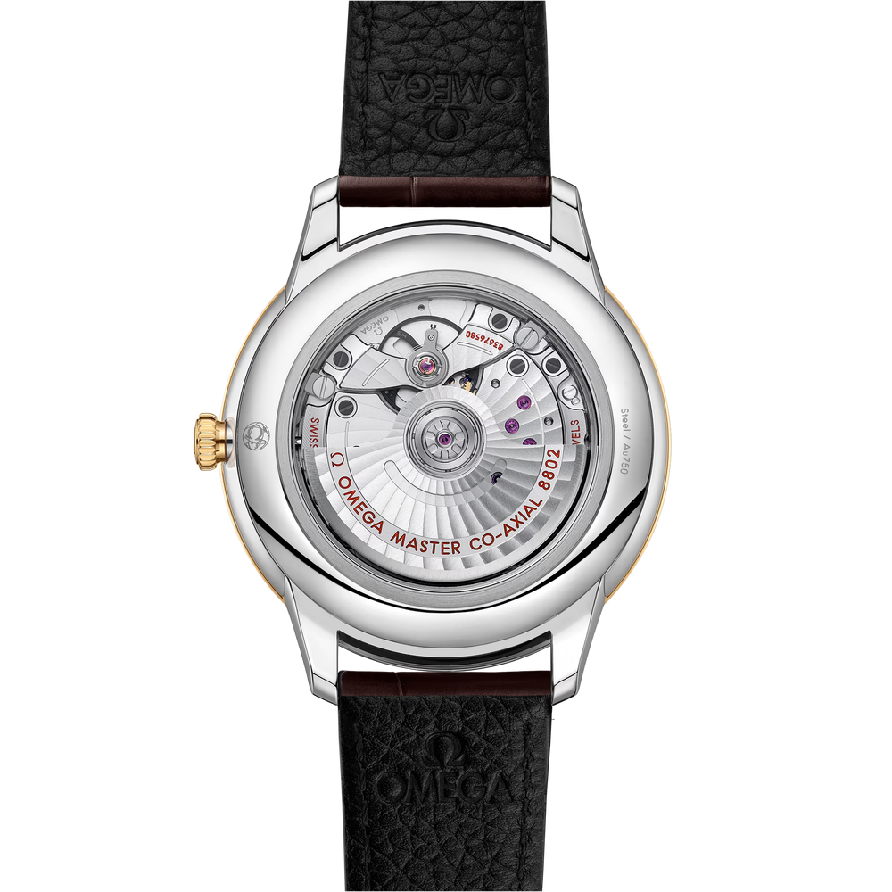 This Master Chronometer certified watch is presented on a brown leather strap and is driven by the OMEGA Master Co-Axial Calibre 8802, which can be admired through the scratch-resistant sapphire crystal caseback.