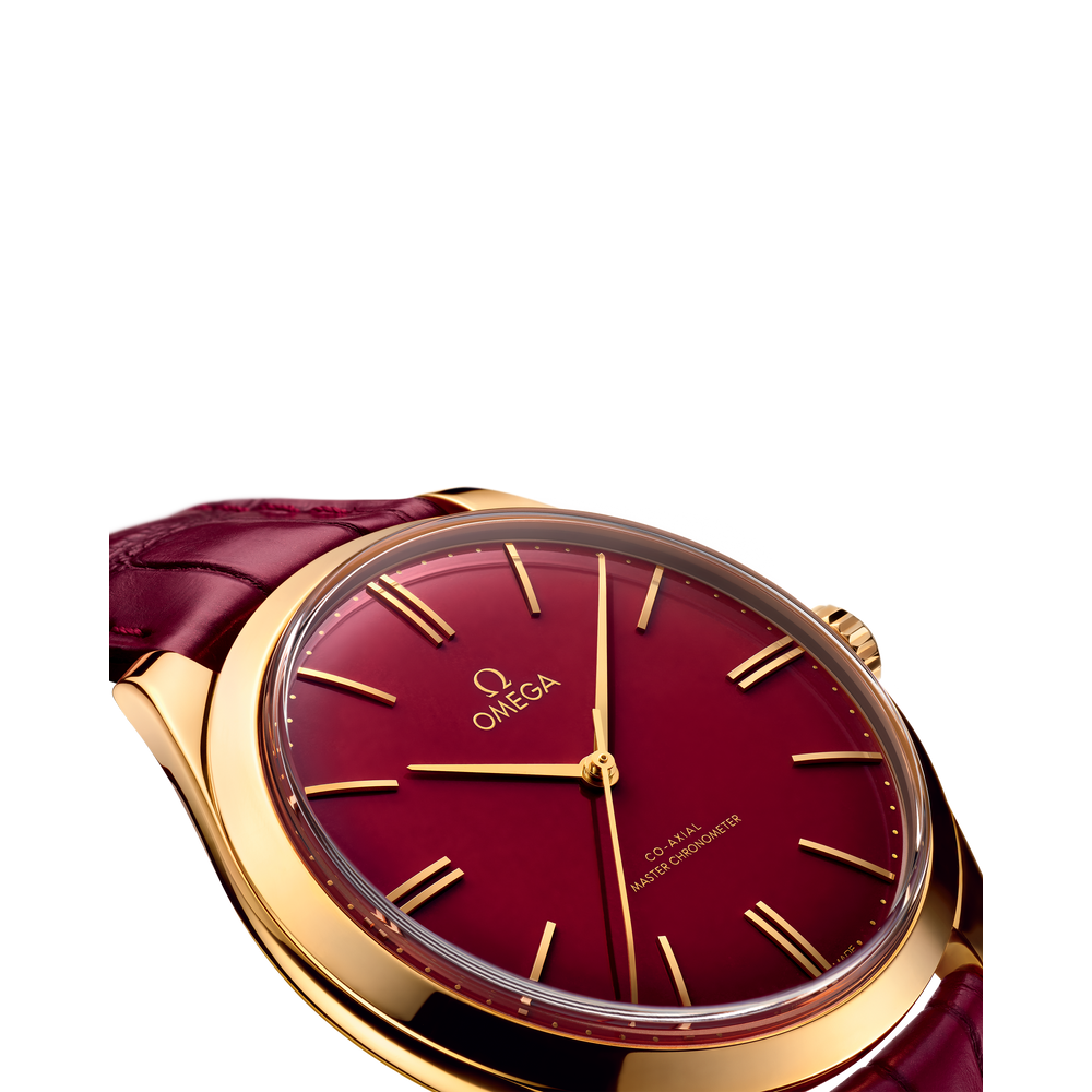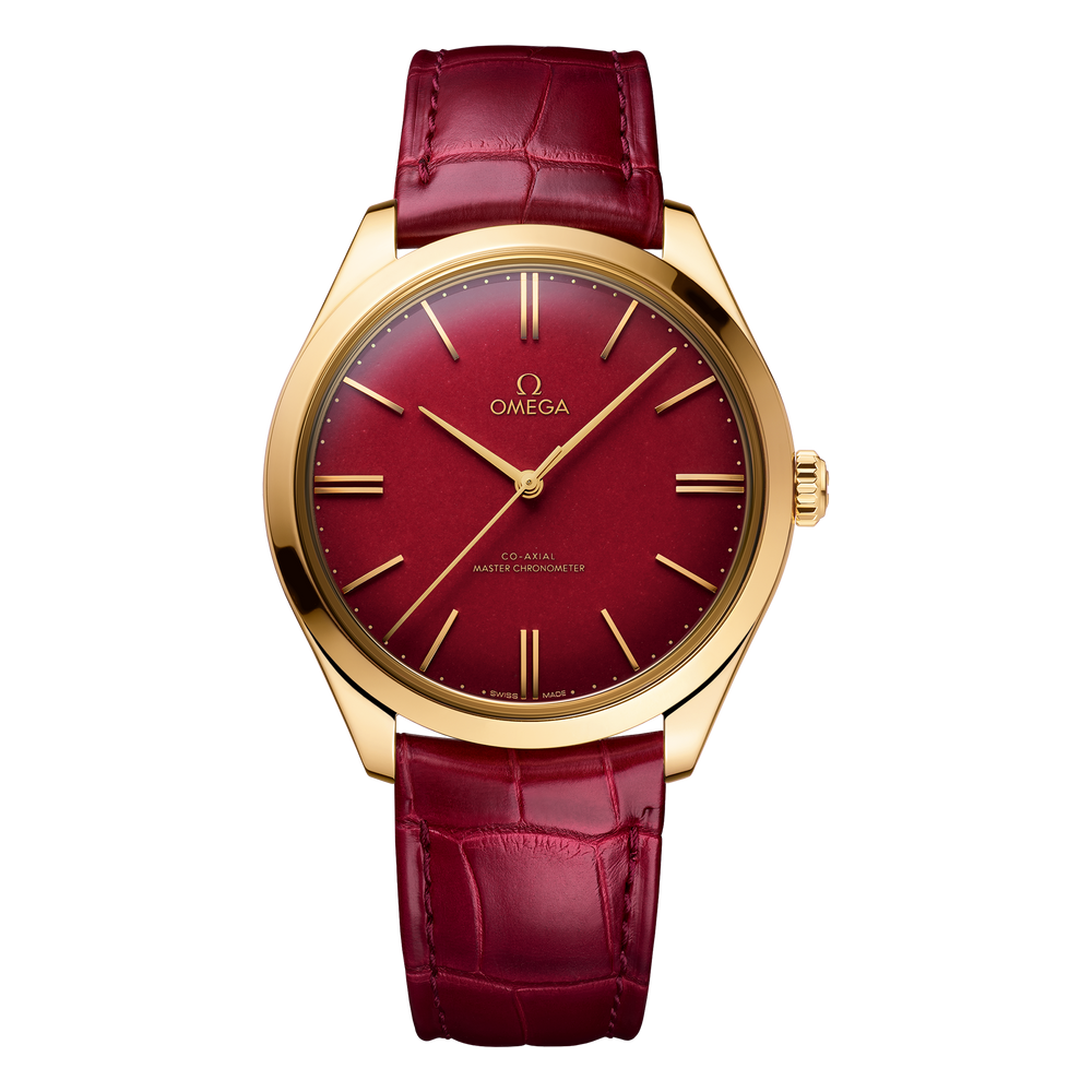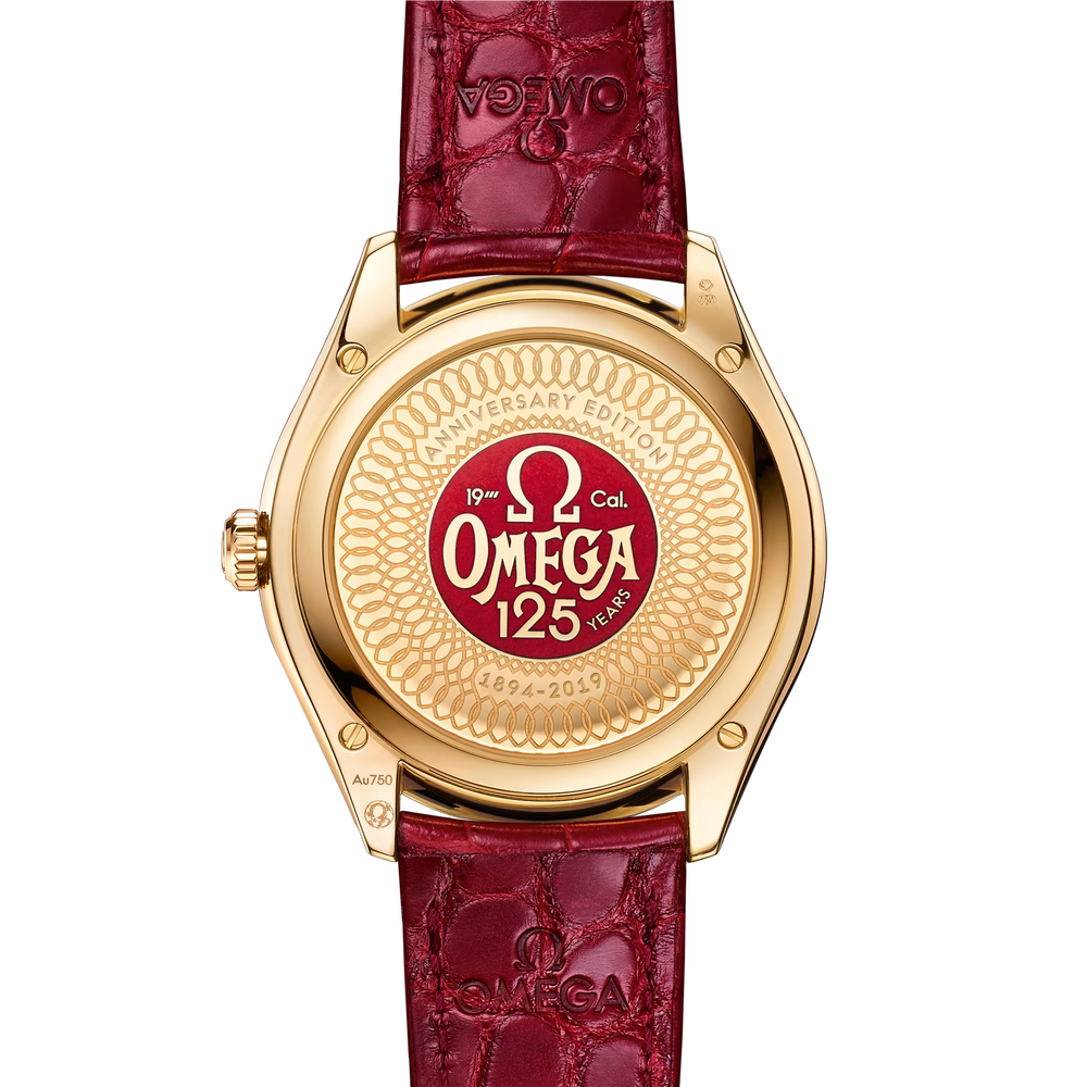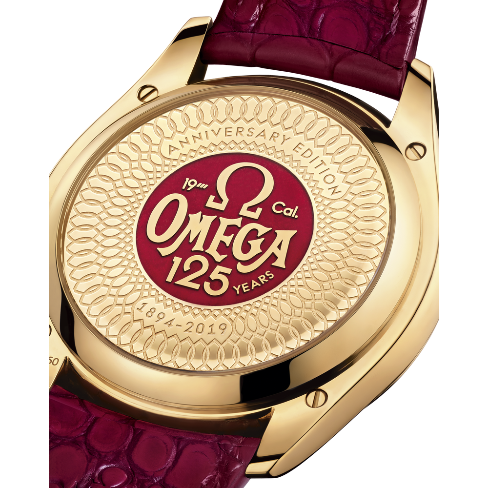 Characterised by its thin and classic case, the Trésor line was first launched by OMEGA in 1949. More than half a century later, the newest models in the collection still remain true to that timeless design.This model celebrates the 125th anniversary of the OMEGA name and has been created with a number of unique touches. The 40mm timepiece includes an 18K yellow gold case with a rare red enamel dial that links to OMEGA’s iconic brand colour, as well as 18K yellow gold domed indexes and hands. The caseback includes an 18K yellow gold anniversary medallion filled with red enamel. This is surrounded by a traditional engraving known as damaskeeing – the same that was originally used on some 19-ligne calibres.The watch is presented on a burgundy leather strap and is driven by the OMEGA Master Chronometer Calibre 8929 – the first manual-winding Master Chronometer movement.