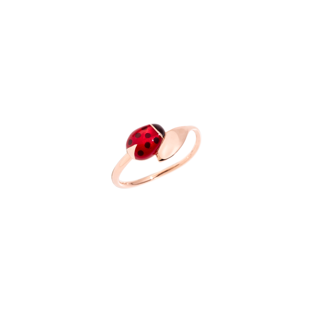9 kt rose gold ladybird ring with coloured enamel.