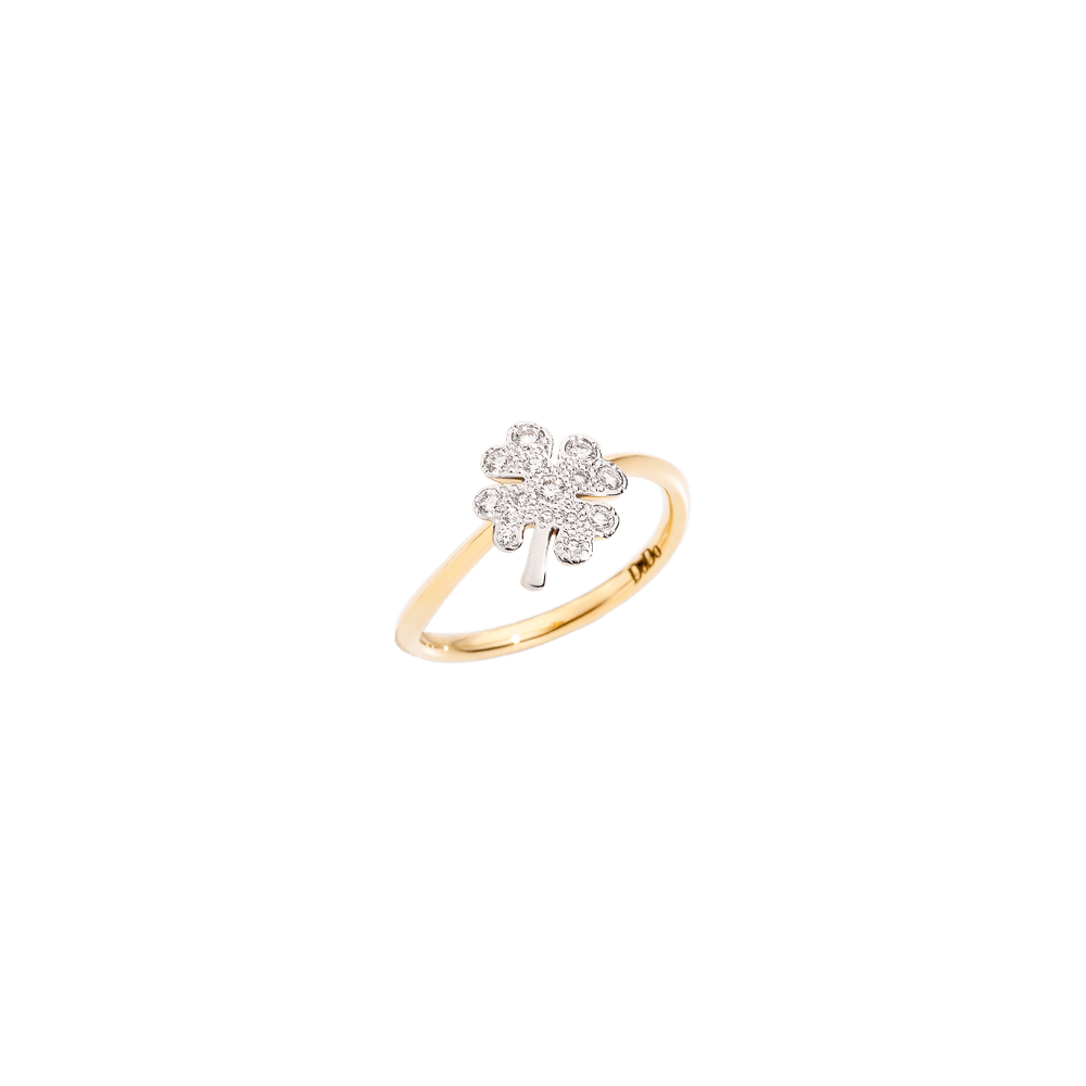 Four leaf clover ring in 18K yellow gold with 16 white diamonds (0.20 ct) - large model.