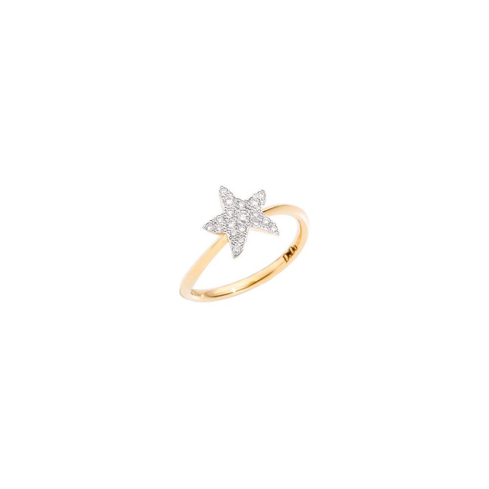 Star ring in 18K yellow gold with 19 white diamonds (0.15 ct) - large model.