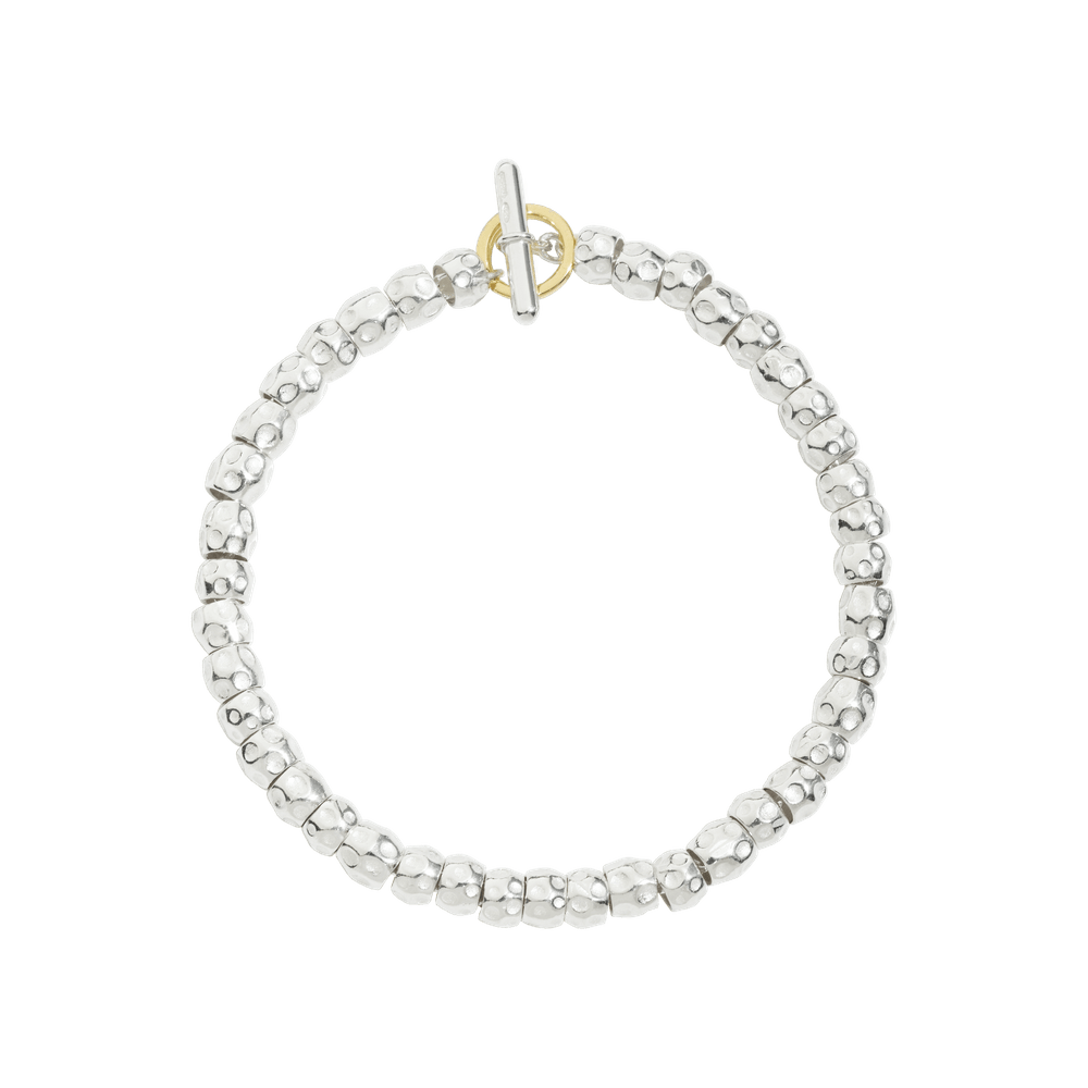 Granelli bracelet in sterling silver, chain in sterling silver with brisè ring closure in 18K yellow gold. Needle in sterling silver included.