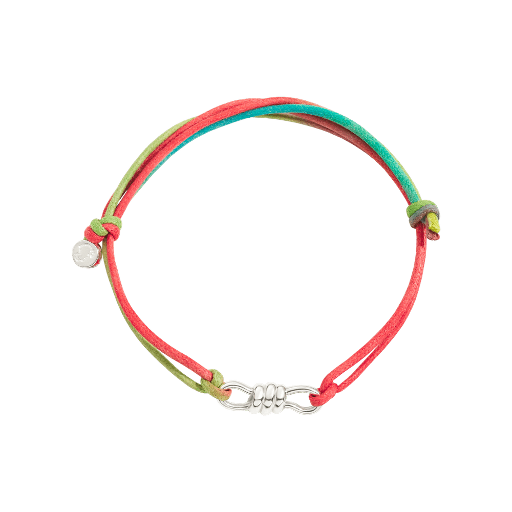 Nodo bracelet in .925 silver and cord in rainbow cotton, .925 silver seal included.