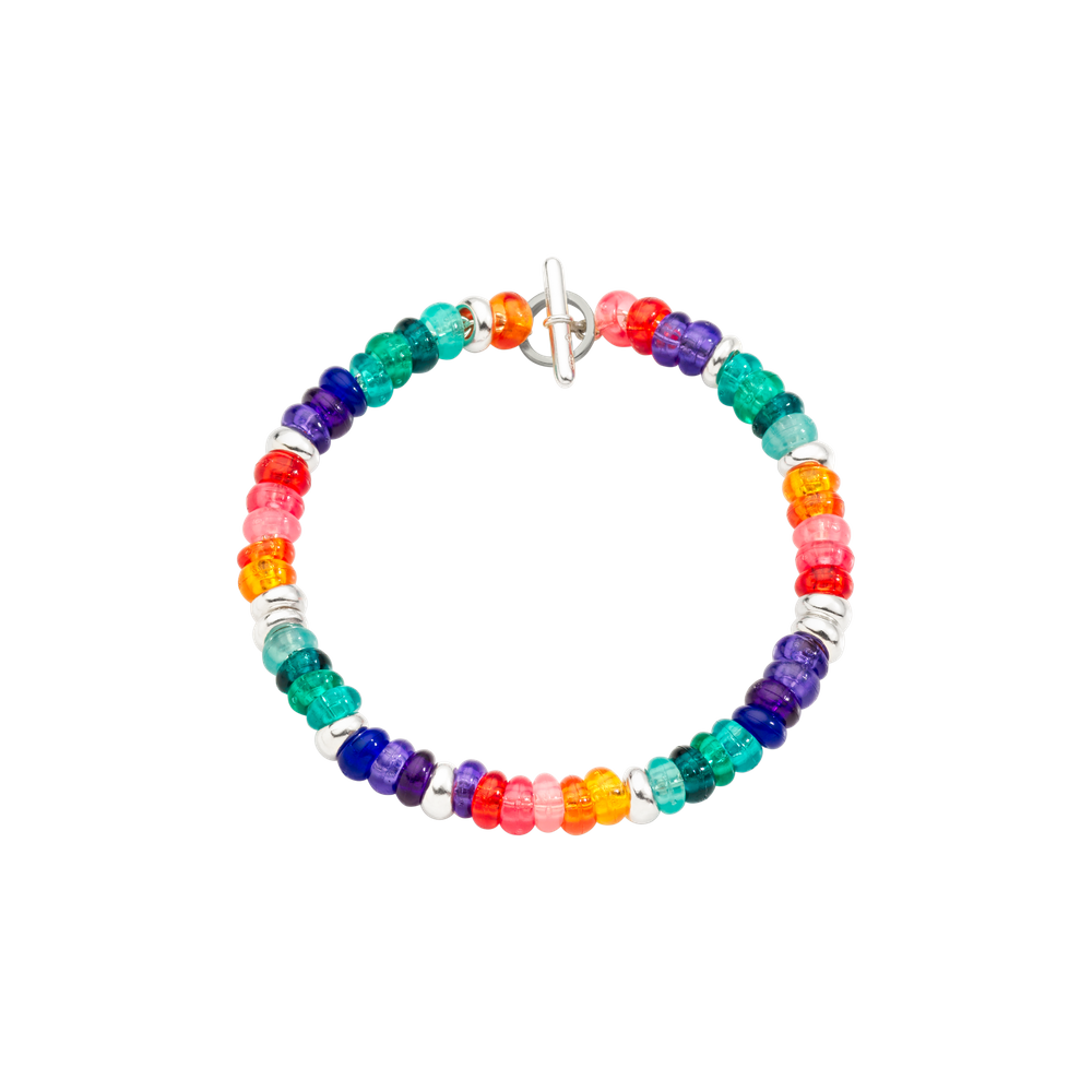 Rondelle Bracelet in .925 silver and recycled plastic, chain and t-bar in .925 silver, closure ring in steel. Bar in .925 silver included.