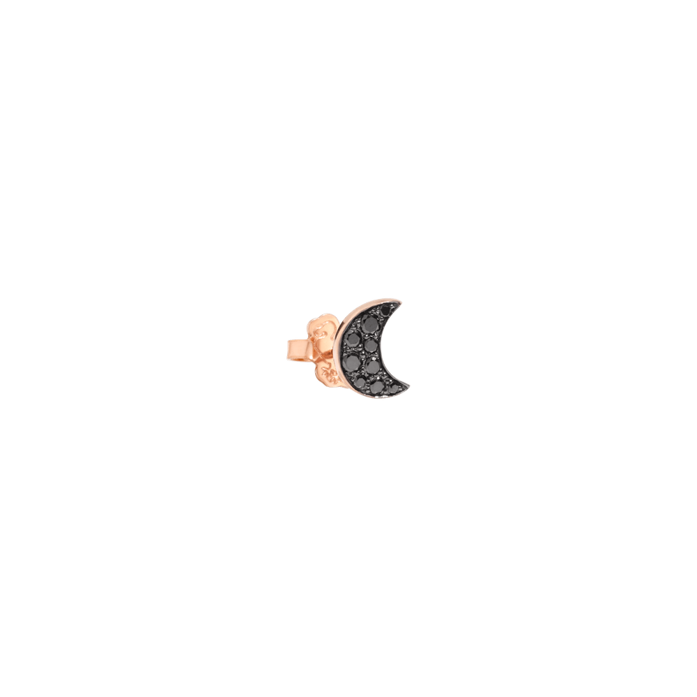 Moon stud earring in 9K rose gold with 9 treated black diamonds (0.15 ct) - small model.