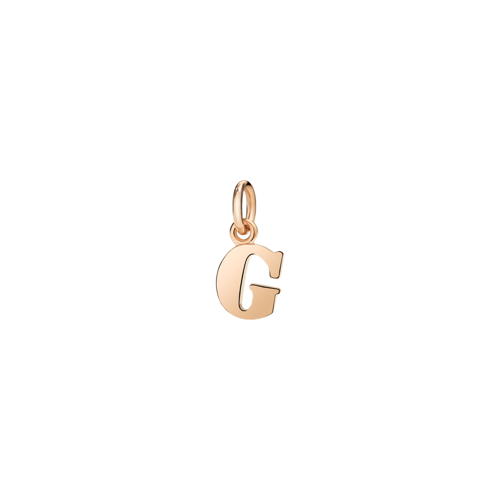 Letter G charm in 9K rose gold - large model. Black cord included.