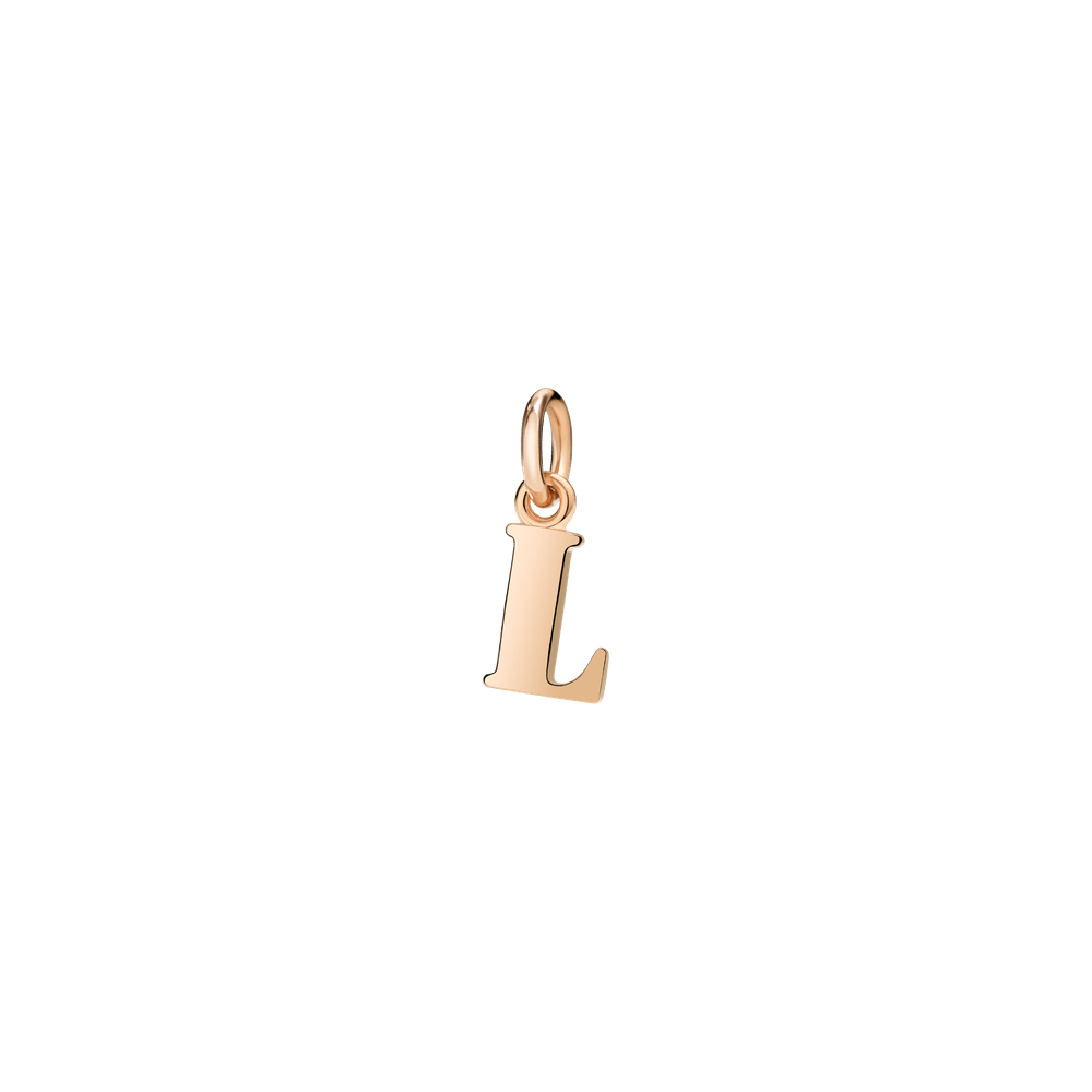 Letter L charm in 9K rose gold - large model. Black cord included.