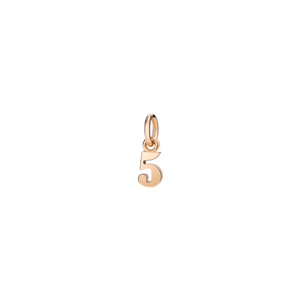 Number 5 charm in 9K rose gold. Black cord included.