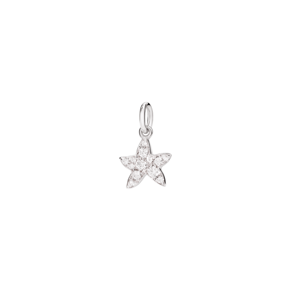 Star charm in 18K rhodium plated white gold with 13 white diamonds (0.16 ct) - small model. Black cord included.