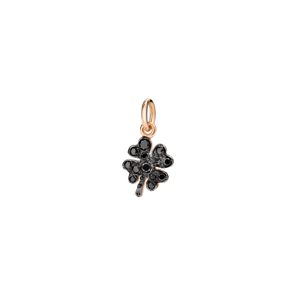 Four leaf clover charm in 9K rose gold with 13 treated black diamonds (0.15 ct) - small model. Black cord included.