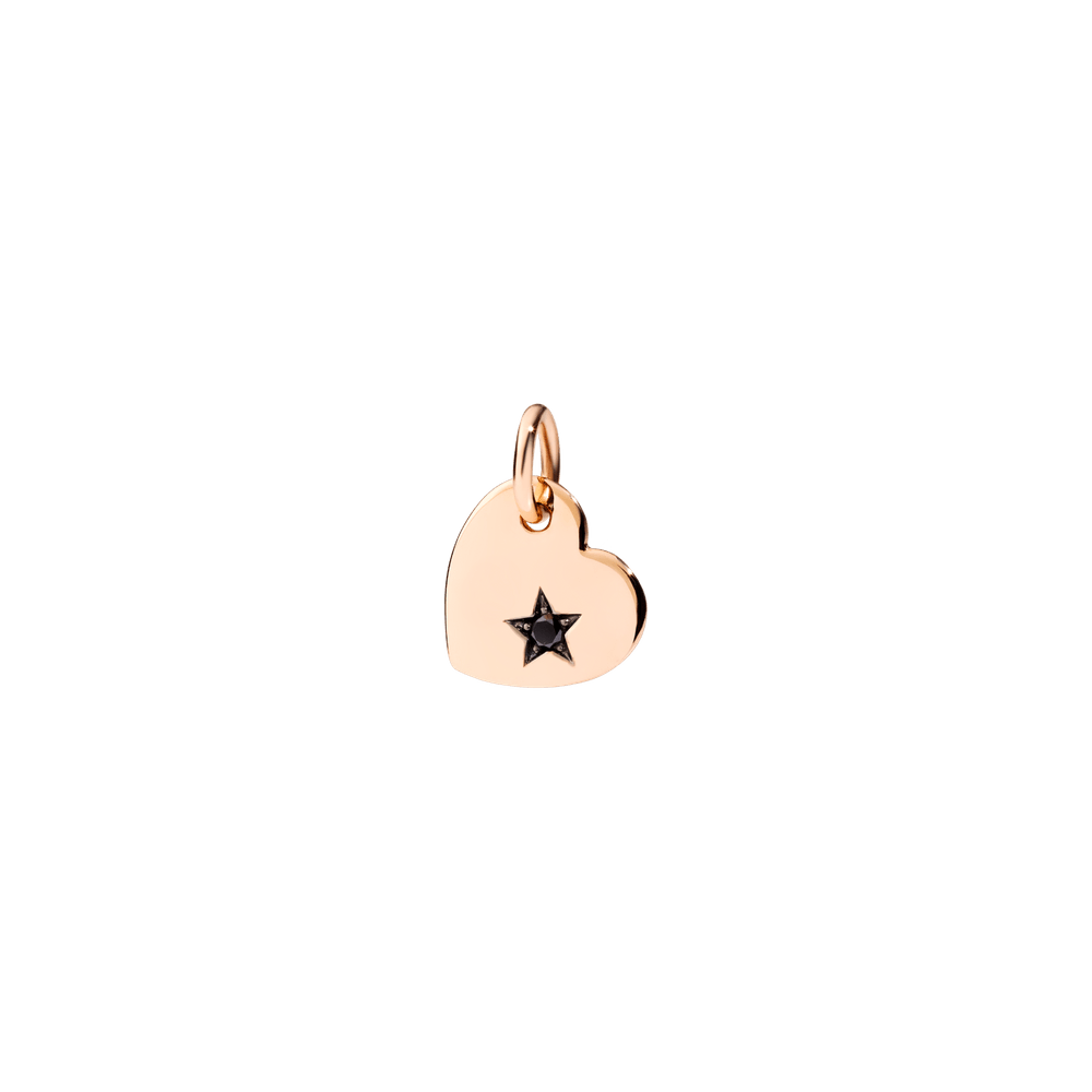 Heart charm in 9K rose gold with 1 treated black diamond (0.025 ct) - large model. Black cord included.