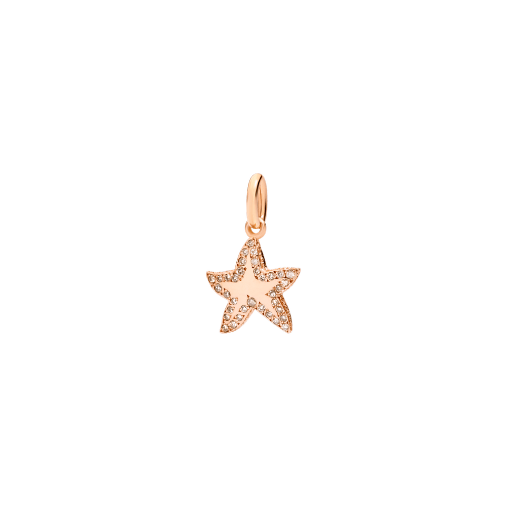 Star charm in 9K rose gold with 36 brown diamonds (0.20 ct) - large model. Black cord included.