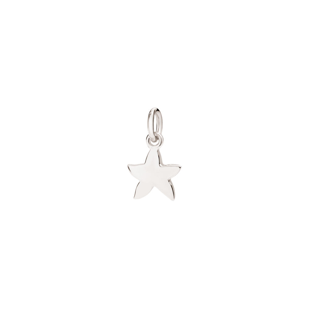 Star charm in 18K rhodium plated white gold - small model. Black cord included.