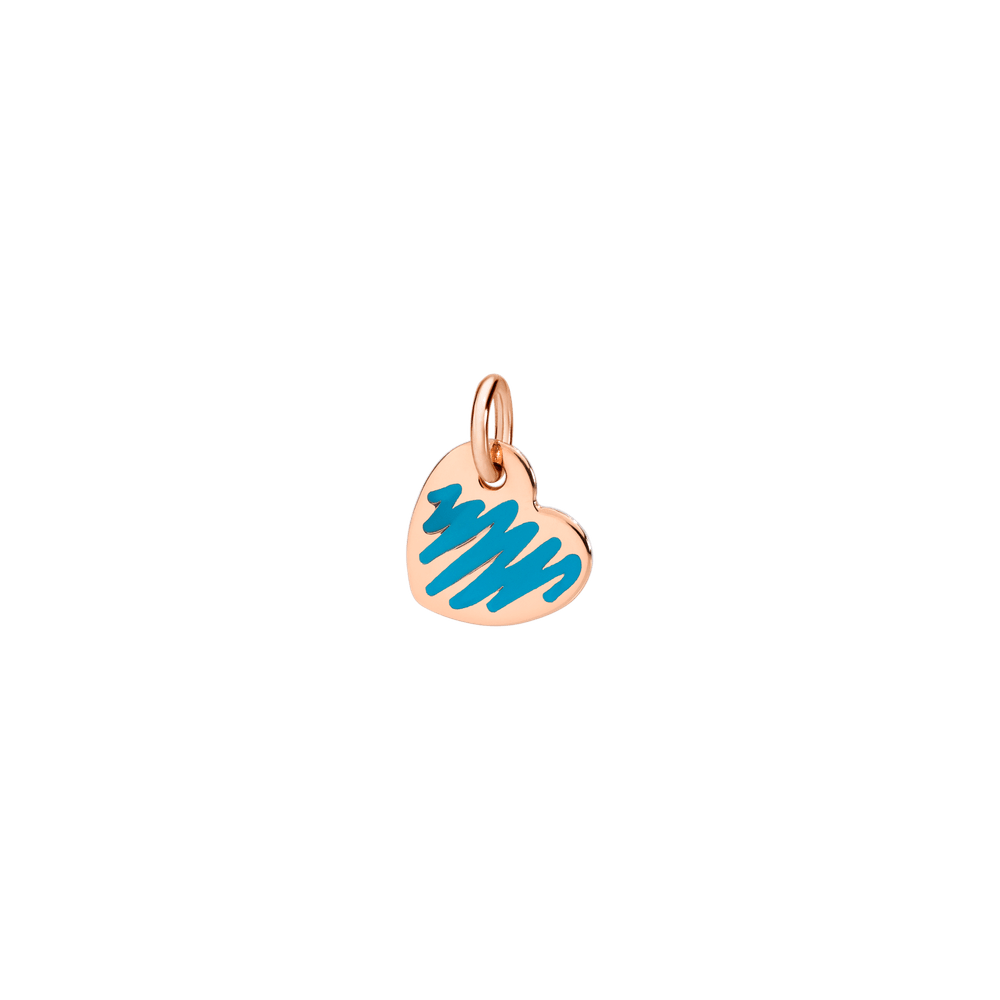 Heart charm in 9K rose gold and light blue enamel - large model. Black cord included.