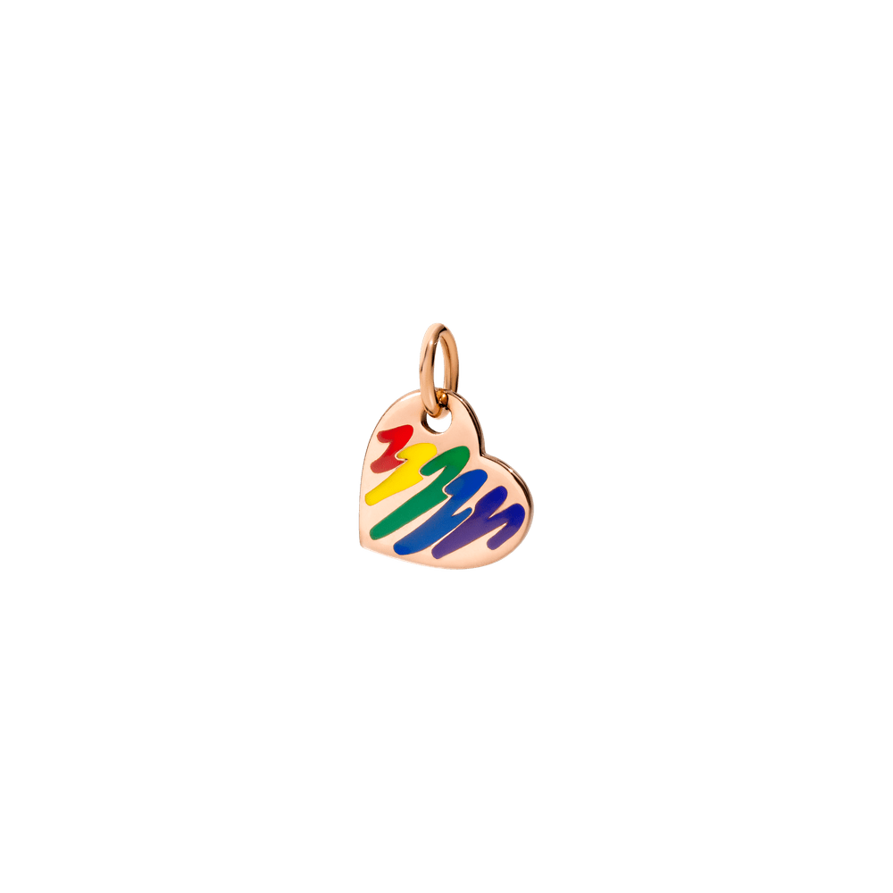 Heart charm in 9K rose gold and rainbow enamel - large model. Black cord included.