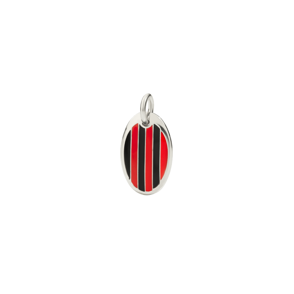 Milan charm in .925 silver and red and black enamel with Milan engraving on back side. Black cord included.