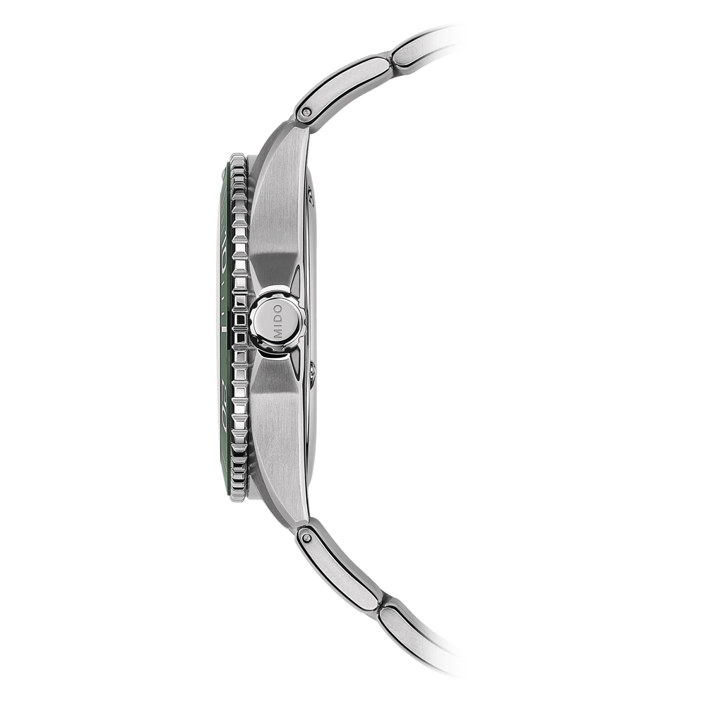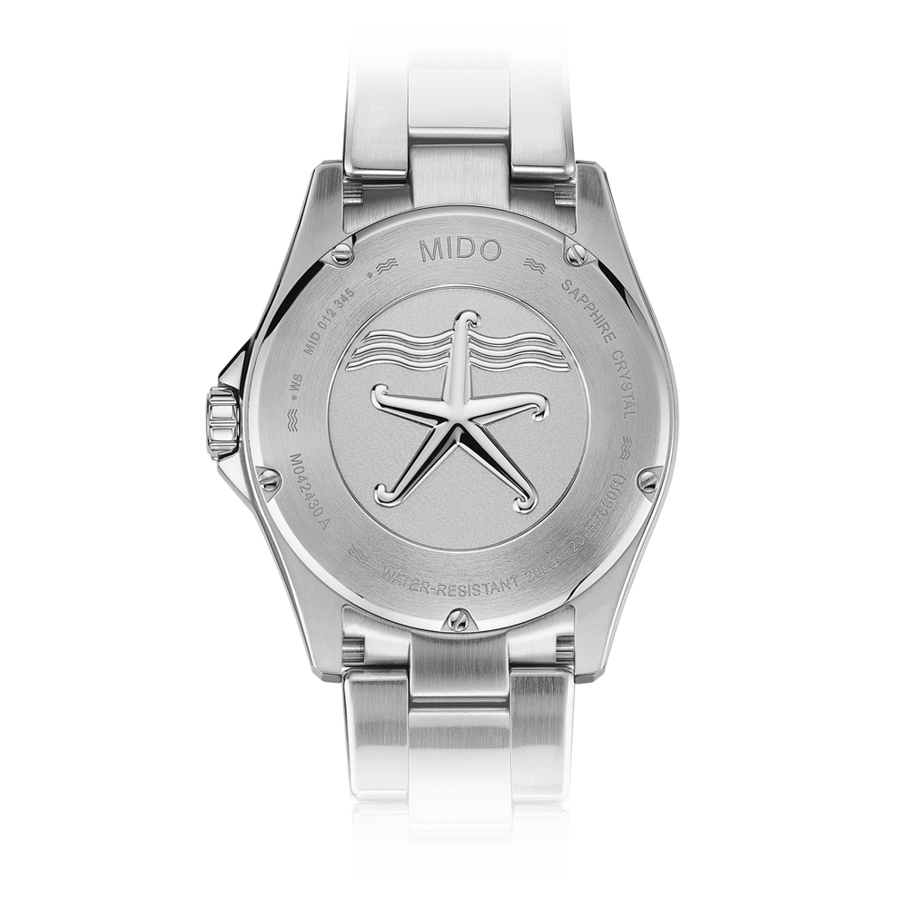 MIDO is bringing ceramic - one of the most outstanding materials in watchmaking - to the unidirectional rotating bezel of its sporty Ocean Star 200C Swiss watch. The dial is decorated offers individually applied indexes coated with white Super-Luminova®. This diving watch is water resistant up to 20 bar, with the case shape providing extra protection for the screw down crown. The screwed-on case back is engraved with the Ocean Star logo. The automatic movement, with a power reserve of up to 80 hours, ensures outstanding reliability.