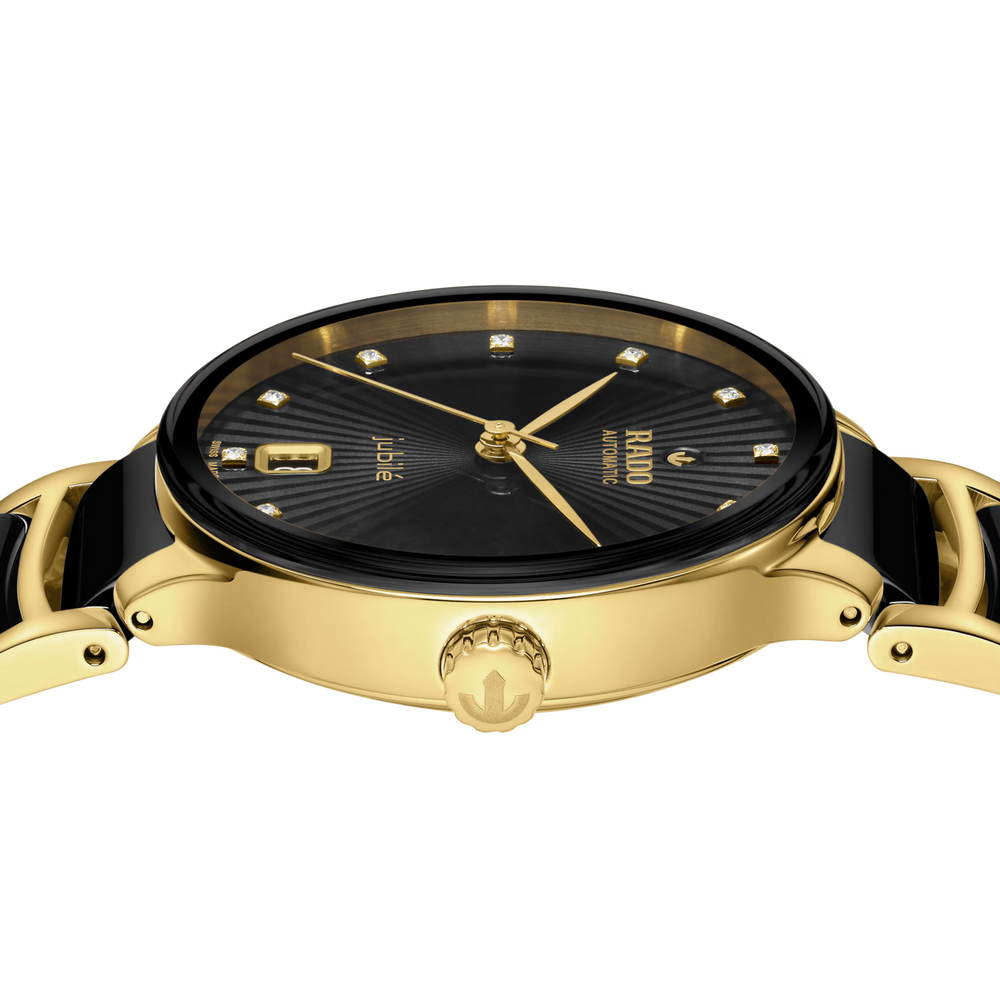 Experience the harmonious blend of visual harmony and artistic expression with the Rado Centrix Automatic Diamonds watch. A gently curved sapphire crystal with a rounded edge, bonded to the case, completes the design and gives perfect readability, thanks to anti-reflective coating on both faces. Inside, the three-hand calibre R763 movement exceeds standard accuracy test requirements from 3 to 5 positions, thanks to its antimagnetic Nivachron™ hairspring for increased reliability and accuracy.