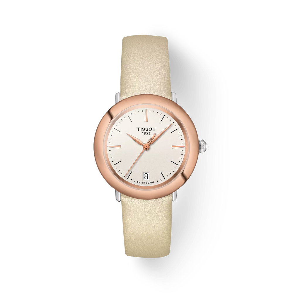 A jewellery watch dedicated to active women wishing to express their graceful feminine charm through a luxury and modern timepiece. The crown is preciously decorated with a cabochon in the shape of a pyramid. Its contemporary design is emphasised by a steel case topped with a bezel in 18 carat solid gold. The counter weight of the second hand is skeletonized. Some models have a powdered leather strap in beige, anthracite or black.