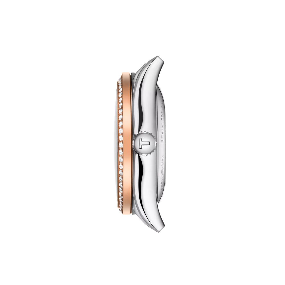 All women The Tissot T-My Lady is not just a feminine watch. Its concept, design and profound vocation make it the ideal watch for women: ladies, elegant, refined or business women - who consider that a watch is an object that journeys through time. Its dimensions - 29 mm in diameter - makes it the ideal everyday companion. Its 18 k solid gold burnished bezel gives relief, character and warmth to the T-My Lady collection. Its mechanical self-winding movement, regulated by a Nivachron spiral has exceptional non-magnetic capacities.